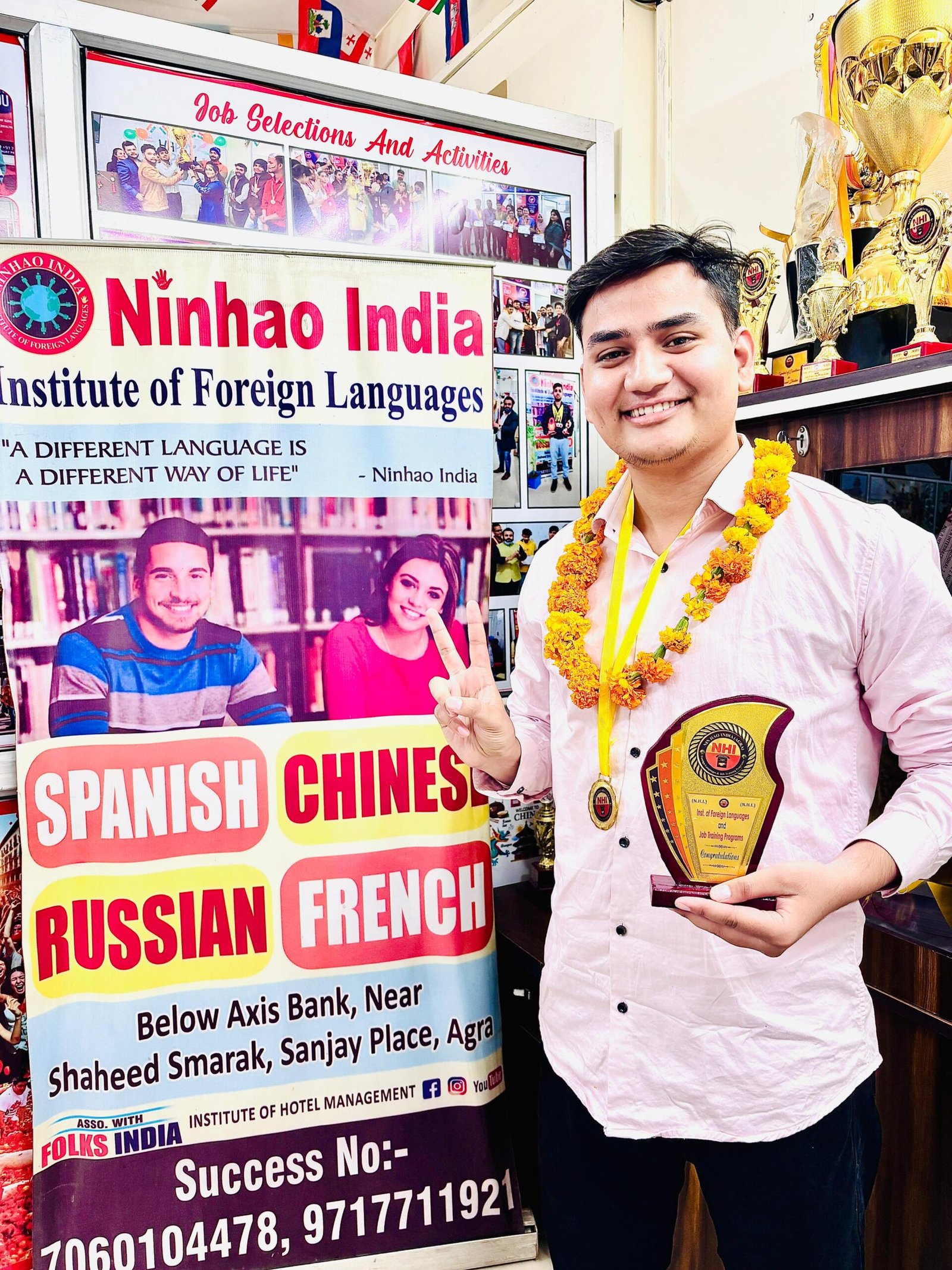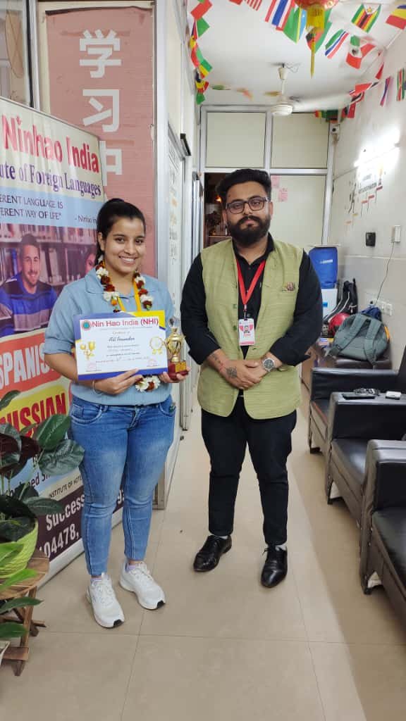 Founded in 2016, N.H.I – Nin Hao India is Agra and Uttar Pradesh’s leading institute for Foreign Languages, Spoken English, AI Communication, and Job-Oriented Professional Training. With a strong reputation built on quality education and global standards, we have successfully trained 5000+ students and helped 3500+ learners secure placements in national and international companies. We are proudly ISO Certified, offering structured, industry-relevant training programs designed by professional, certified, and experienced trainers. As India’s first institute to integrate Foreign Languages + AI Communication + Job Skills under one roof, we prepare students for higher education abroad, multinational companies, and global career opportunities. At N.H.I – Nin Hao India, we focus on real-life speaking practice, corporate communication, personality development, and international-level skill-building. Whether you want to learn Chinese, German, Spanish, English, or enhance your AI communication skills, our programs ensure accuracy, fluency, confidence, and career growth.